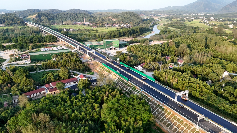 【路橋“競(jìng)”行時(shí)】宣涇高速一期03標(biāo)全線瀝青攤鋪完成