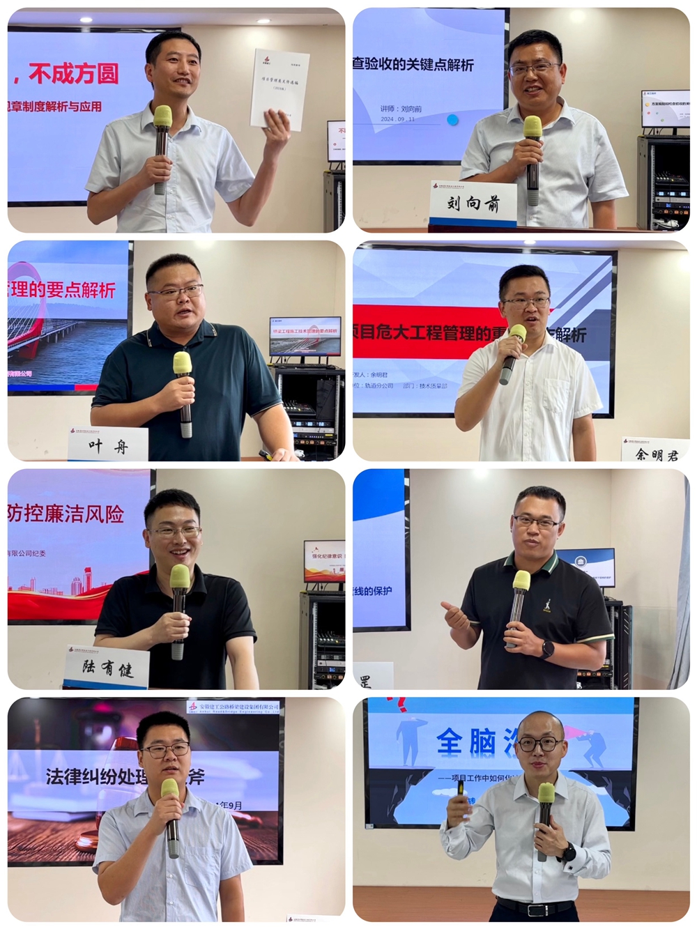 培訓(xùn)內(nèi)容包括集團(tuán)最新規(guī)章制度解析、方案編制和項(xiàng)目危大工程管理、廉潔風(fēng)險(xiǎn)防范、法律糾紛處理以及通用管理等課程。
