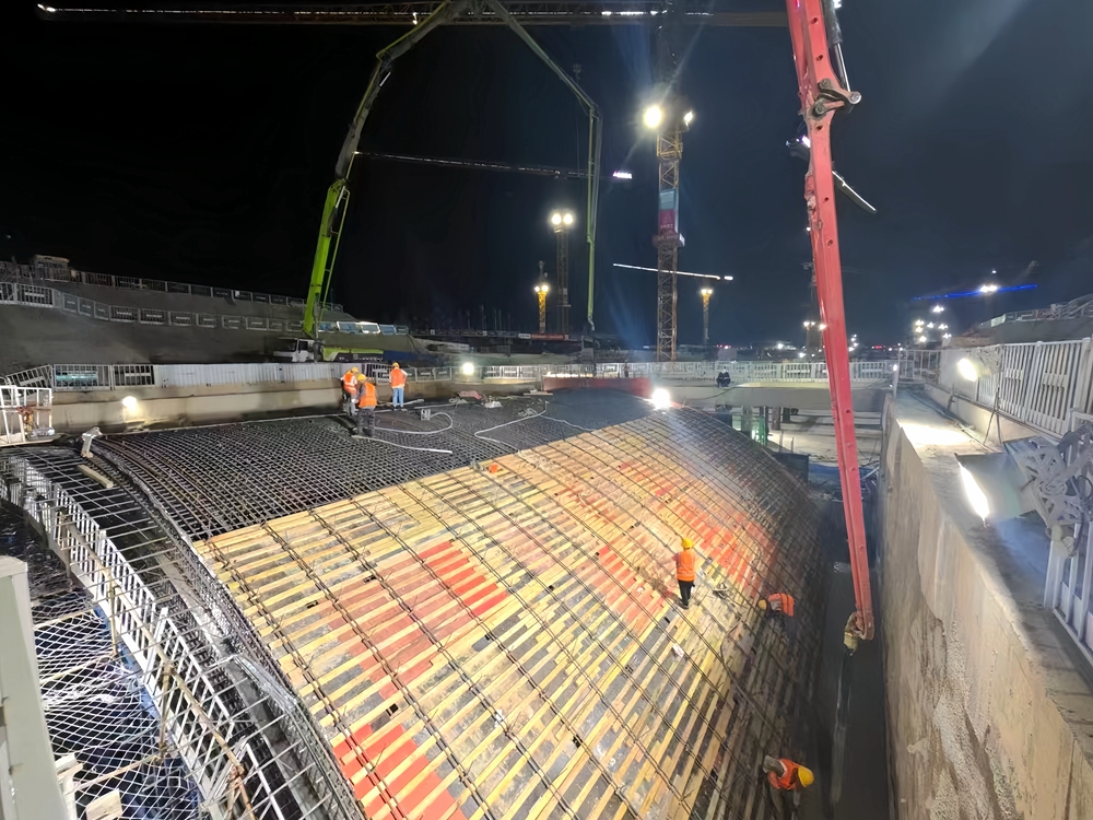 作為安徽省首個(gè)空地軌一體化綜合客運(yùn)交通樞紐項(xiàng)目,合肥新橋機(jī)場(chǎng)綜合交通中心項(xiàng)目現(xiàn)場(chǎng)一派繁忙景象。群塔作業(yè)指揮有序,工程土方運(yùn)輸日夜不歇,在GTC、多功能廳、大鐵馬蹄段、小鐵標(biāo)準(zhǔn)段現(xiàn)場(chǎng),600余名工人同步作業(yè)。“圓一個(gè)夢(mèng)想,勝過小家話中秋”,一線建設(shè)者們同信念,同理想,一鼓作氣,鉚足干勁抓生產(chǎn),奮斗著的中秋,最美。