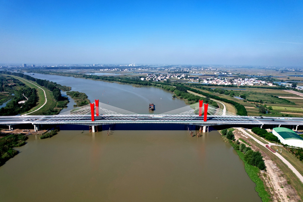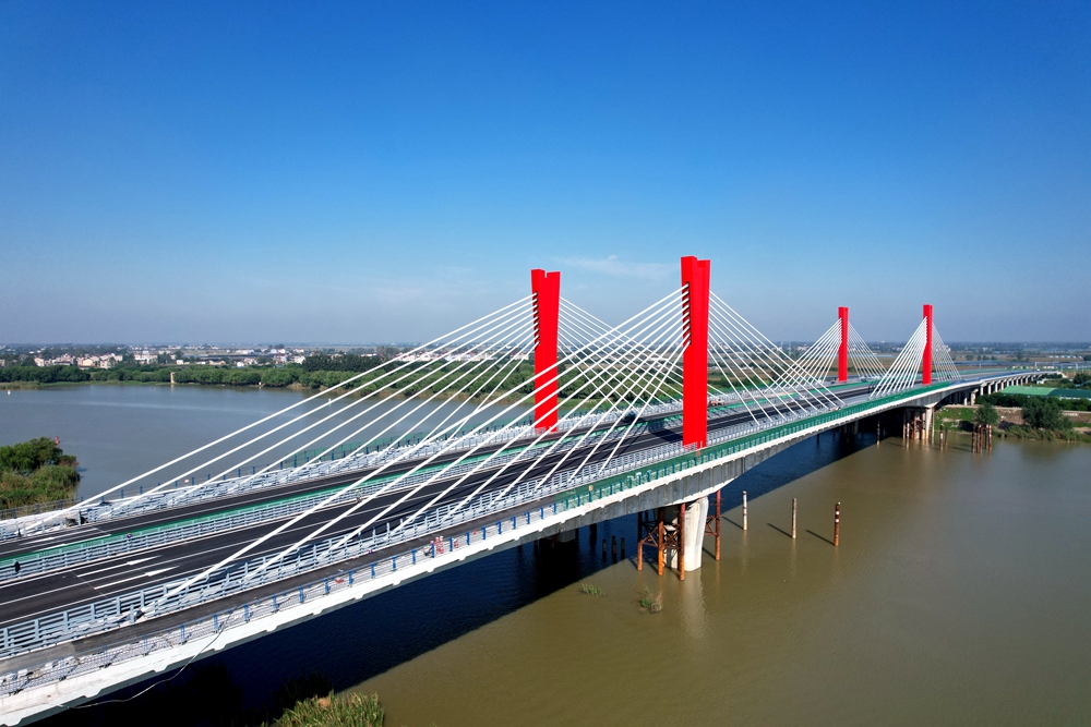 G206-03標(biāo)主體位于蚌埠市懷遠(yuǎn)縣境內(nèi),路線(xiàn)全長(zhǎng)11.894公里,采用一級(jí)公路標(biāo)準(zhǔn)建設(shè)。其中,控制性節(jié)點(diǎn)工程渦河八橋?yàn)樘卮髽?,全長(zhǎng)1201米,為混凝土矮塔斜拉橋,是蚌埠市重要地標(biāo)性工程。