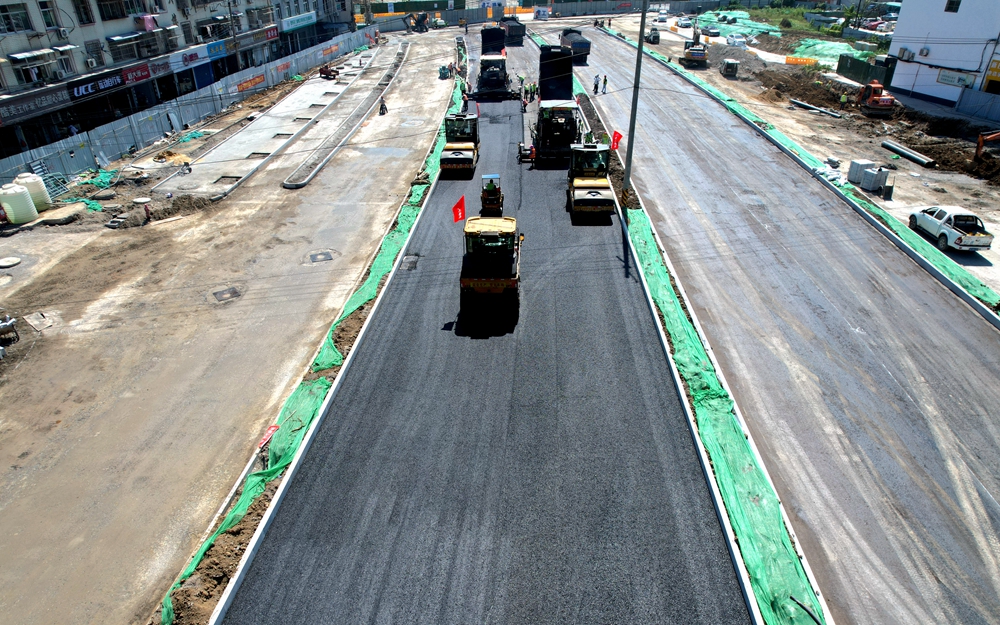 在肥西市政項目,項目團(tuán)隊搶抓晴好天氣,人員機(jī)械密切配合,推動創(chuàng)新大道、云谷路全面進(jìn)入瀝青攤鋪施工階段,提前完成計劃產(chǎn)值。