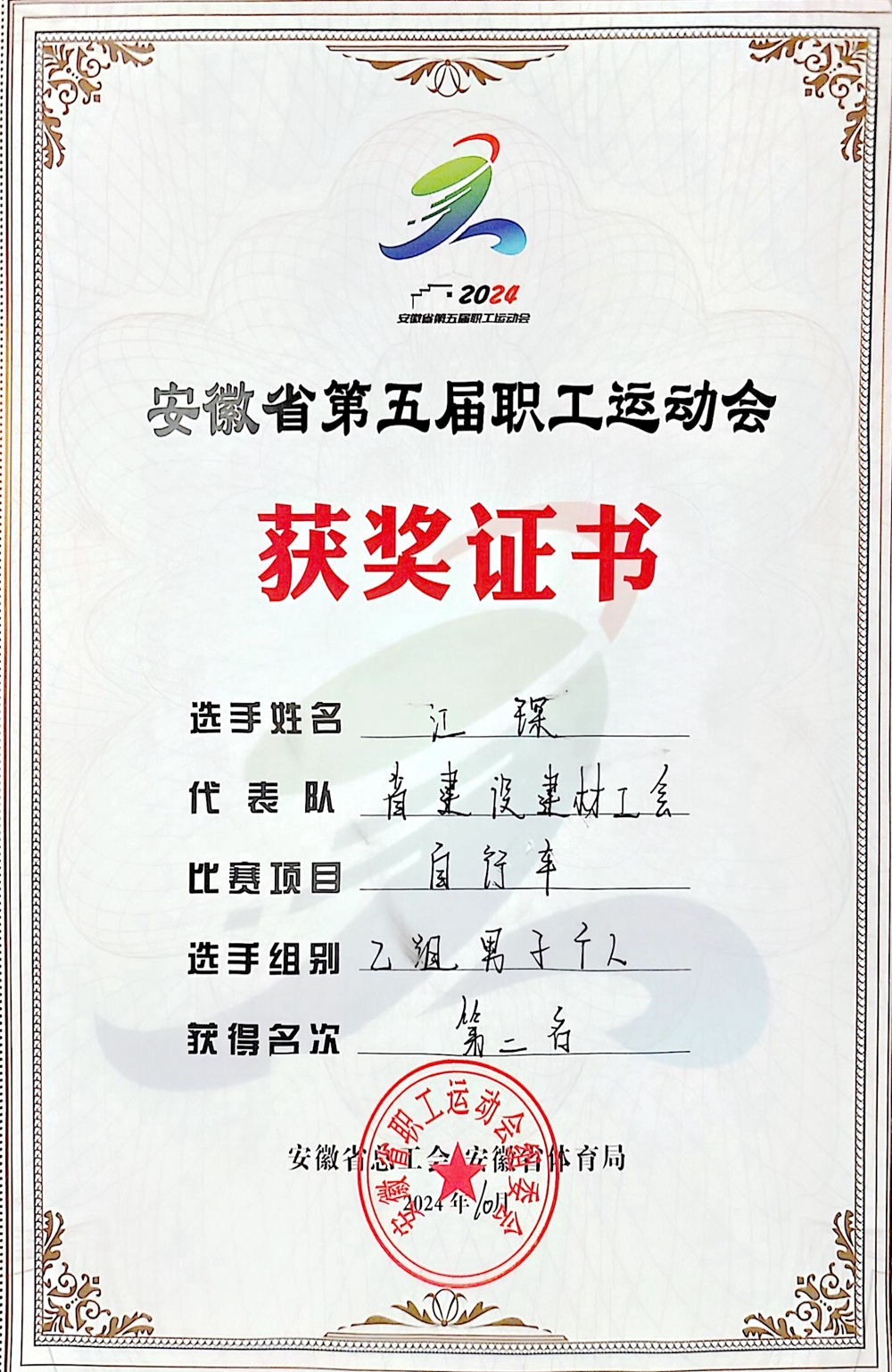 10月13日,由安徽省總工會(huì)、安徽省體育局聯(lián)合舉辦的省第五屆職工運(yùn)動(dòng)會(huì)自行車比賽在池州舉行,公司選送的參賽選手江琛代表省建設(shè)建材工會(huì)參加角逐,經(jīng)過激烈比拼,取得乙組自行車男子個(gè)人第二名的優(yōu)異成績。