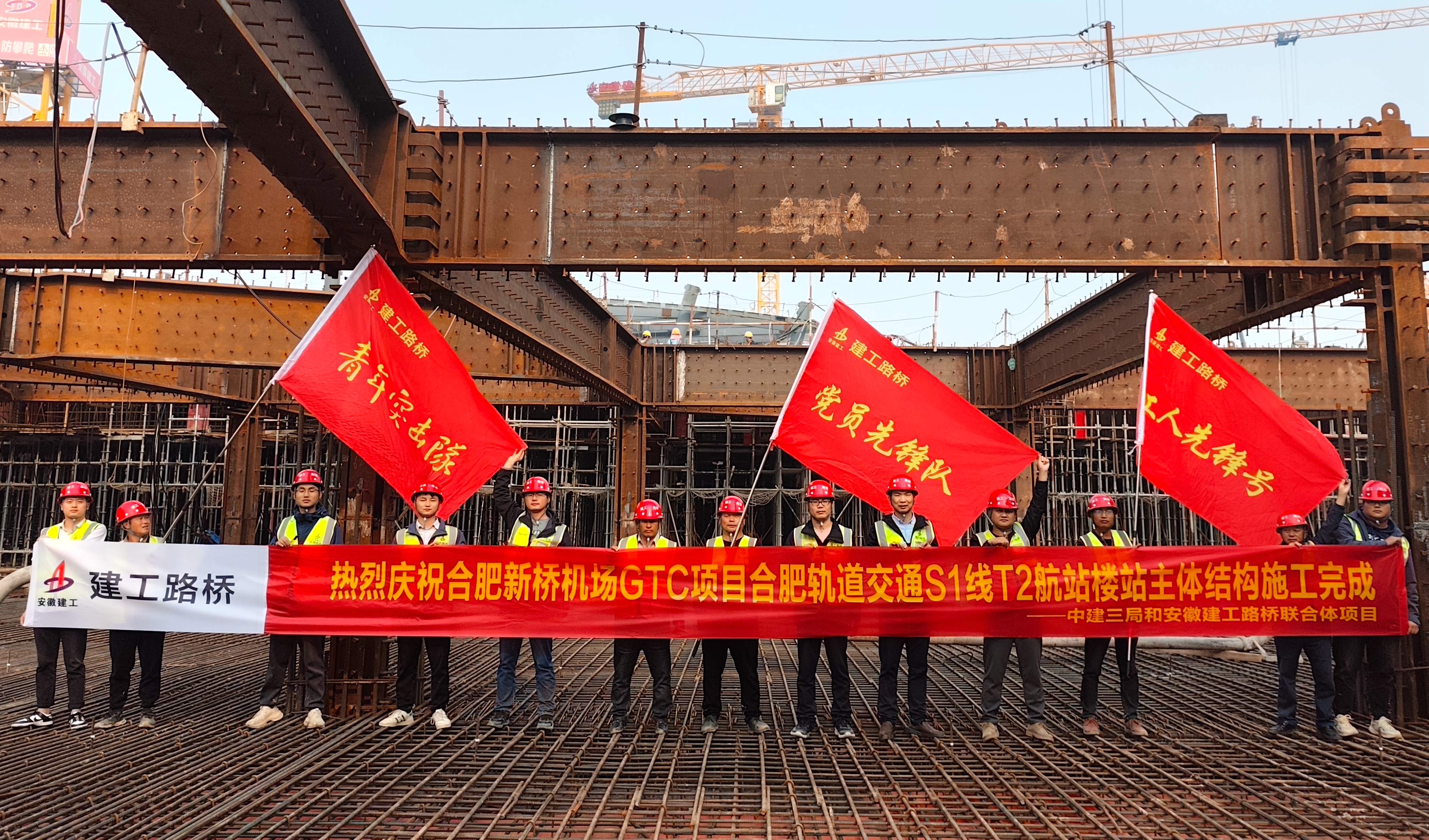 【路橋“競”行時】合肥新橋國際機場綜合交通中心項目軌道交通S1號線T2航站樓站結構封頂