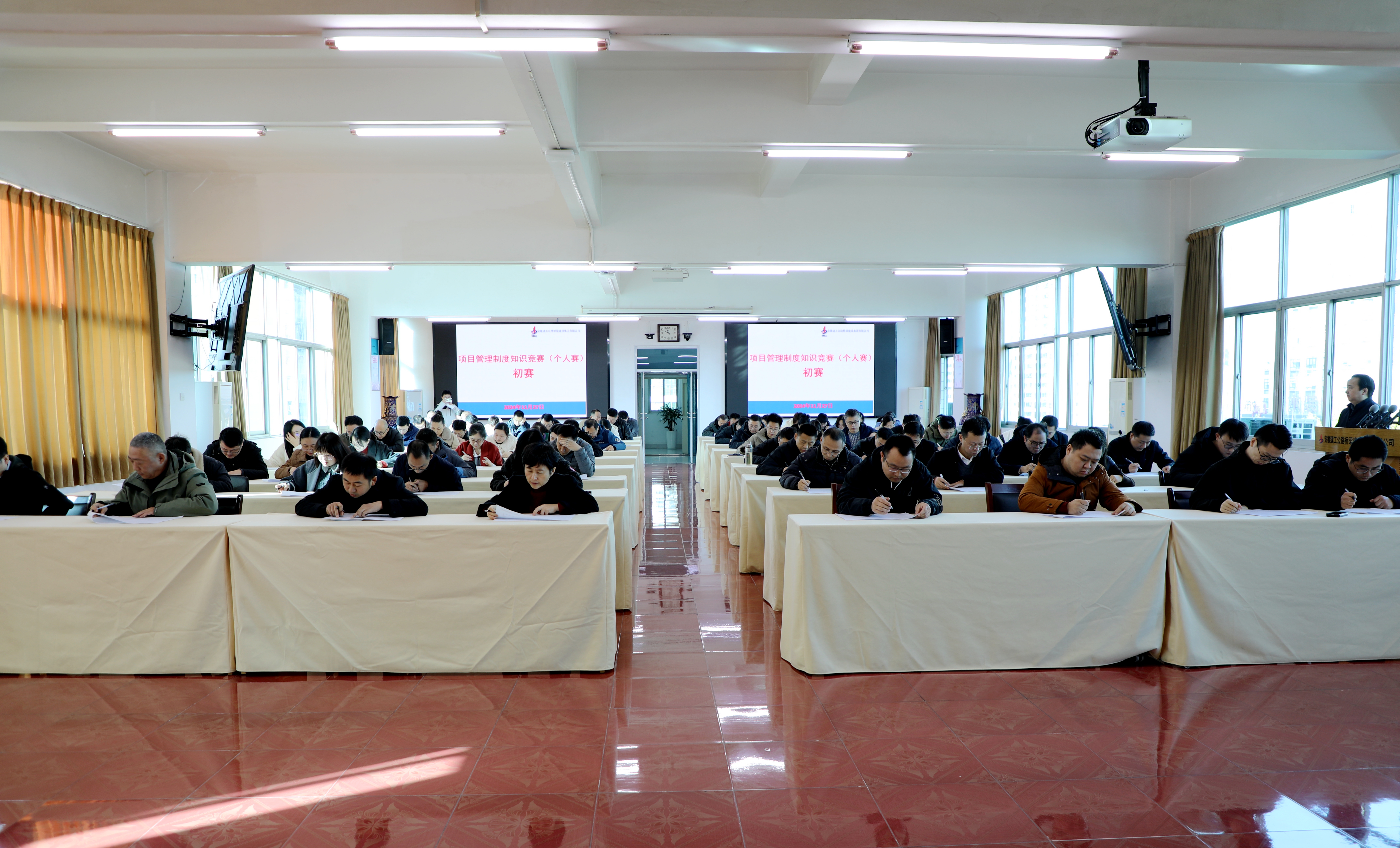 公司機(jī)關(guān)全體管理人員在七樓會(huì)議室集中閉卷考試,集團(tuán)工程管理部與公司工程管理部現(xiàn)場監(jiān)考,公司紀(jì)委全程監(jiān)督。所屬各單位和項(xiàng)目員工在線上完成測試。