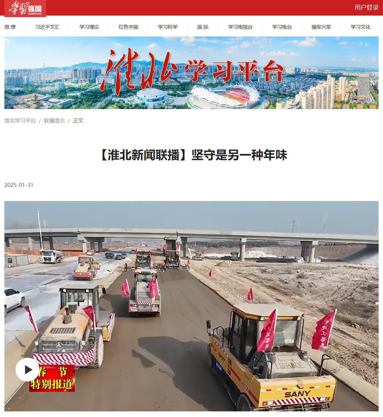 【名媒聚焦】學(xué)習(xí)強國、淮北新聞聯(lián)播關(guān)注報道徐淮阜高速淮北段項目春節(jié)期間堅守項目建設(shè)