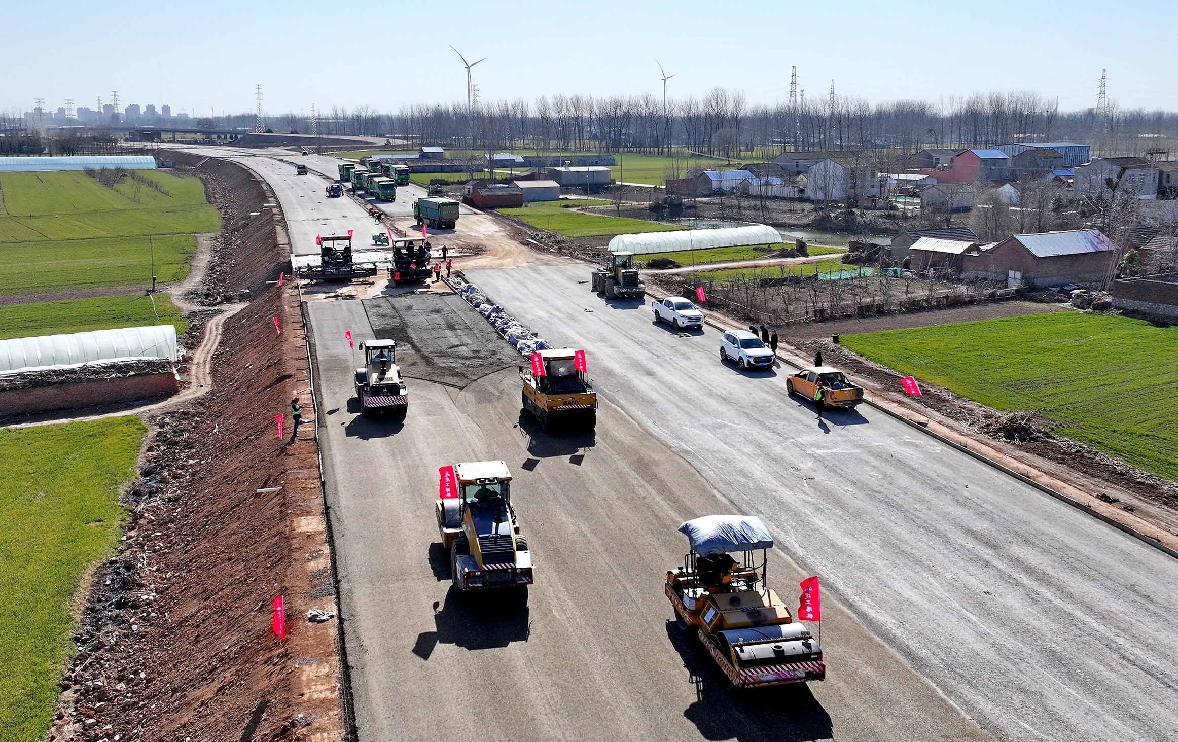春暉大干正當(dāng)時(shí) | 徐淮阜高速淮北段項(xiàng)目主線水穩(wěn)攤鋪完成