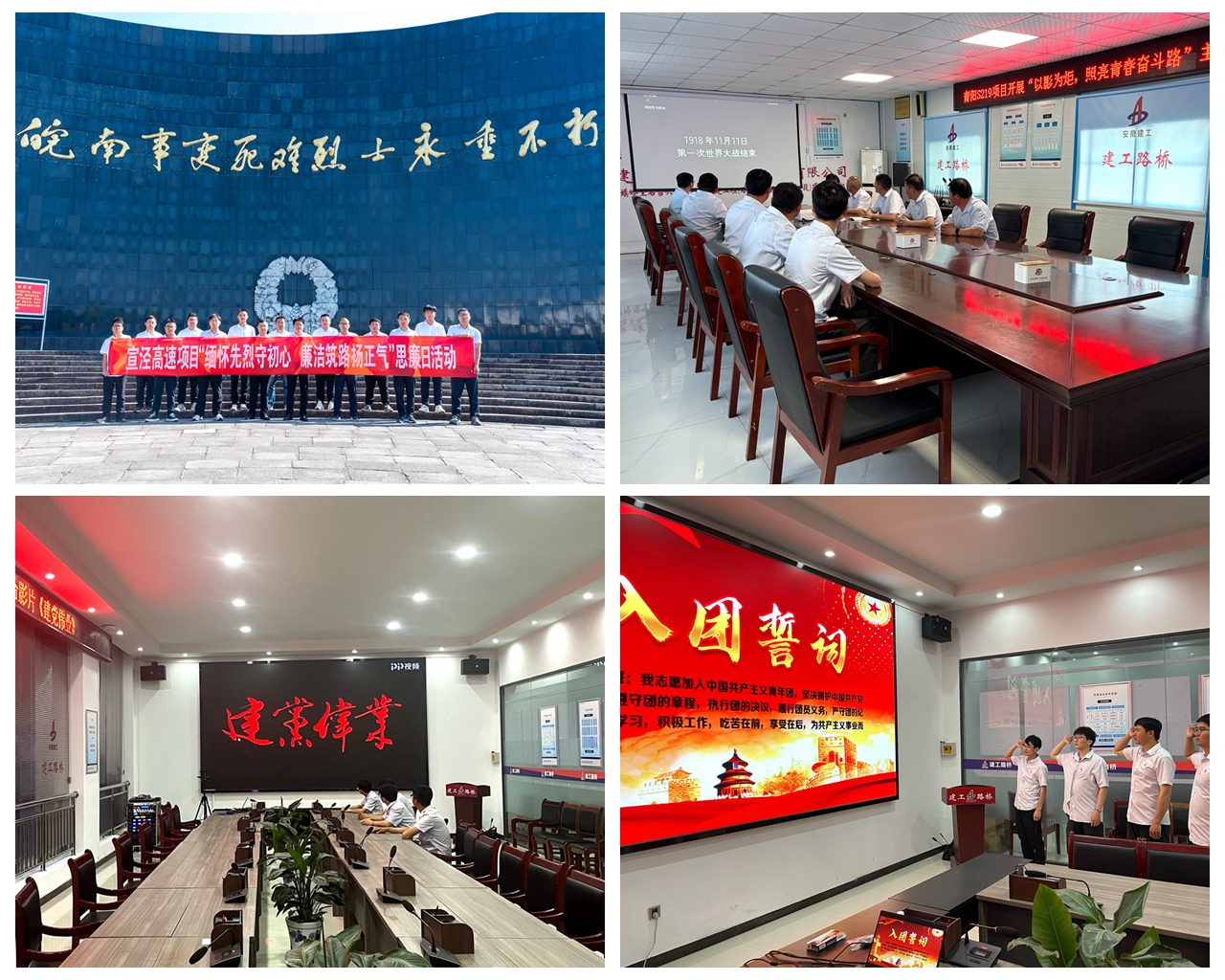 宣涇高速項(xiàng)目團(tuán)員青年赴涇縣皖南事變烈士陵園,實(shí)地感悟先輩不畏犧牲、忠誠(chéng)擔(dān)當(dāng)?shù)木衿犯?。青?yáng)S219改建項(xiàng)目、天堂寨支線(xiàn)高速等項(xiàng)目組織青年職工觀看《1912》《建黨偉業(yè)》等紅色影片,并重溫入團(tuán)誓詞,教育引導(dǎo)團(tuán)員青年牢記革命先輩的英勇事跡,汲取了革命先輩的信仰力量與忠誠(chéng)擔(dān)當(dāng)精神。