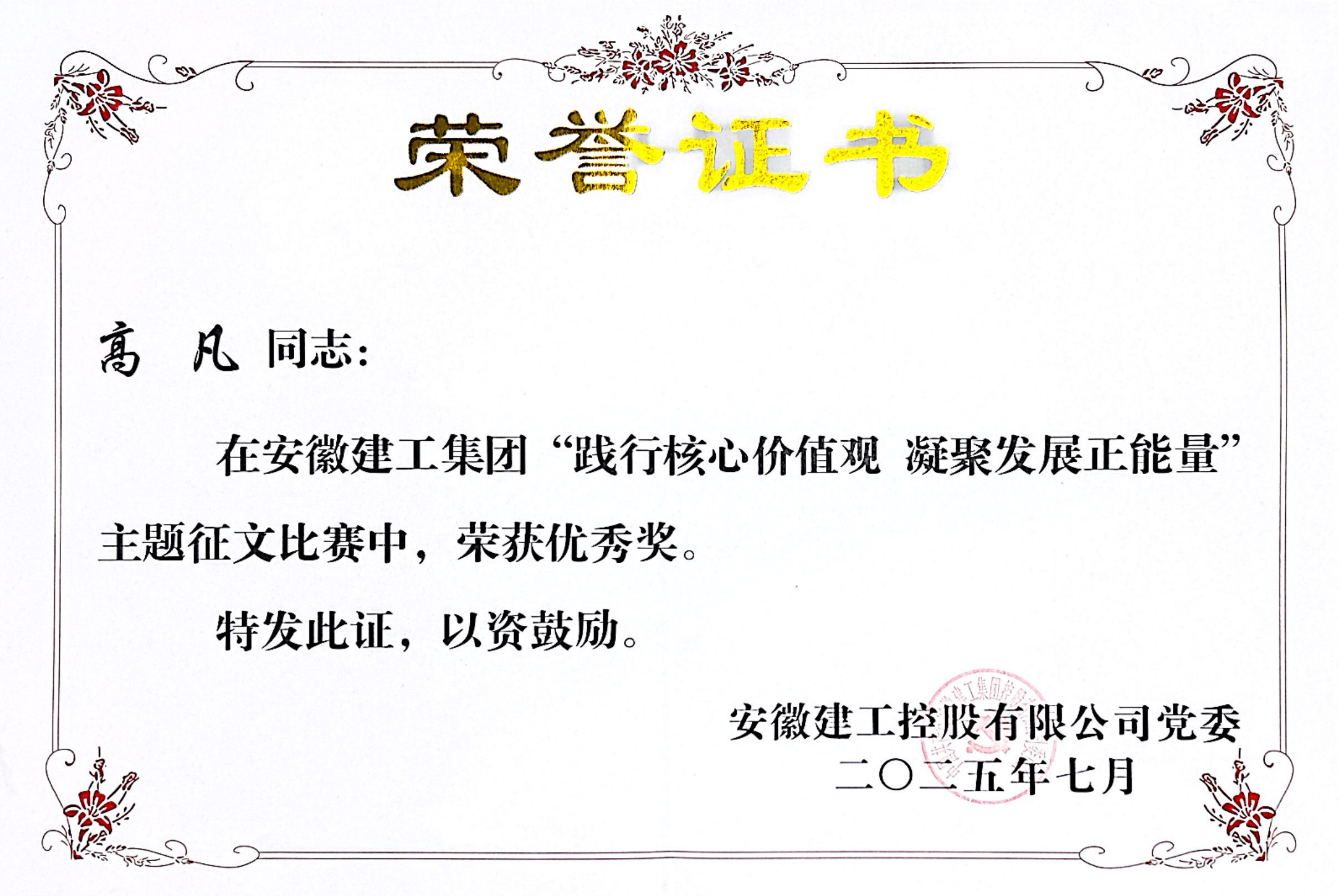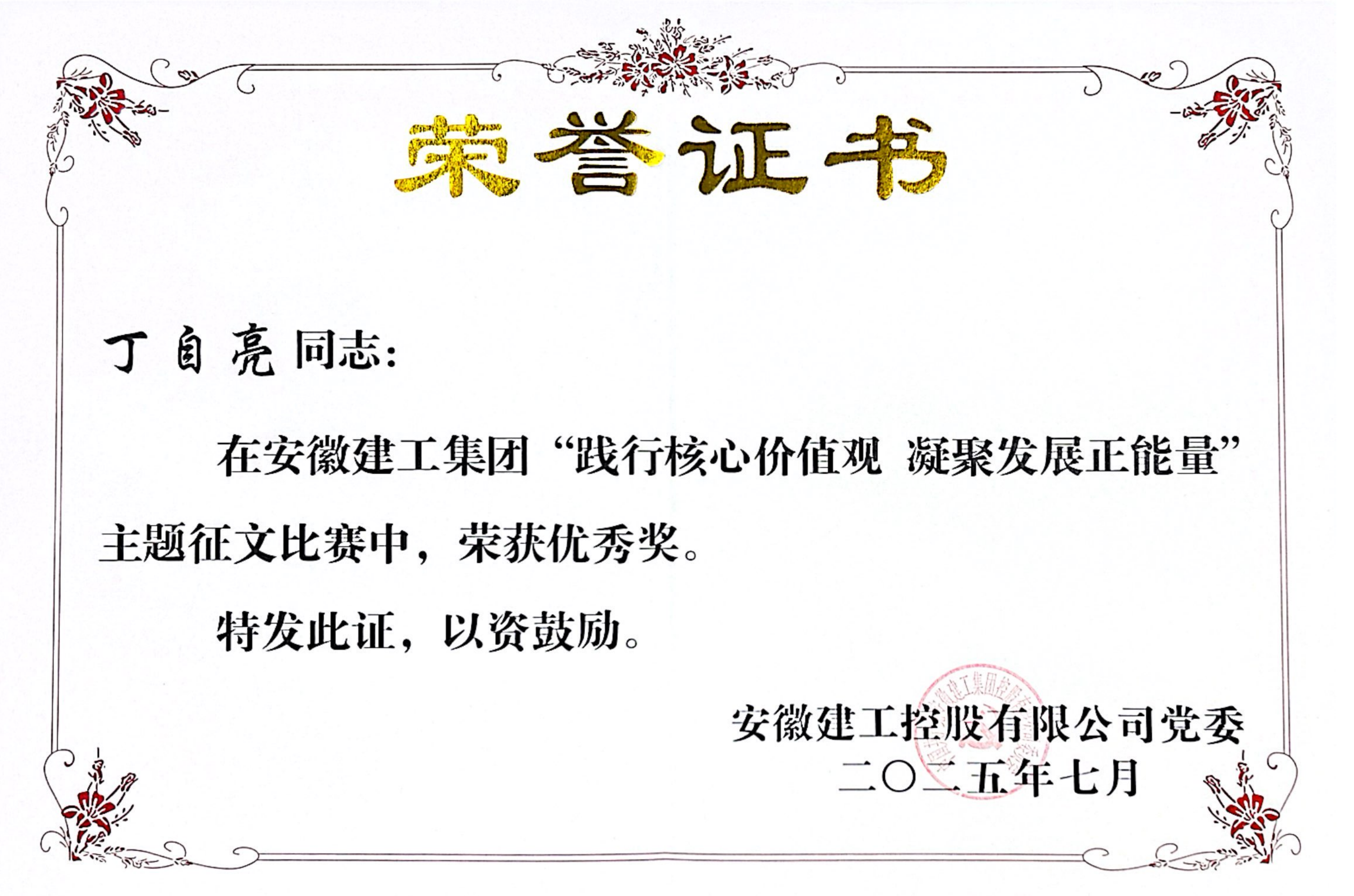 近日,集團(tuán)“踐行核心價(jià)值觀,凝聚發(fā)展正能量”主題征文比賽結(jié)果公布,公司報(bào)送的多個(gè)作品在數(shù)十篇優(yōu)秀作品中脫穎而出。其中,合肥分公司趙小龍同志作品《踐行核心價(jià)值觀,織就立體交通新篇章——安徽建工合肥新橋機(jī)場(chǎng)綜合交通中心建設(shè)紀(jì)實(shí)》斬獲一等獎(jiǎng),公路一公司丁自亮同志作品《戎裝換工服 丹心映初心——一名退役軍人的核心價(jià)值觀踐行之路》、橋梁公司高凡同志作品《經(jīng)緯縱橫處 燈火照長(zhǎng)路——建工價(jià)值觀的泥土與鋼》榮獲優(yōu)秀獎(jiǎng)。