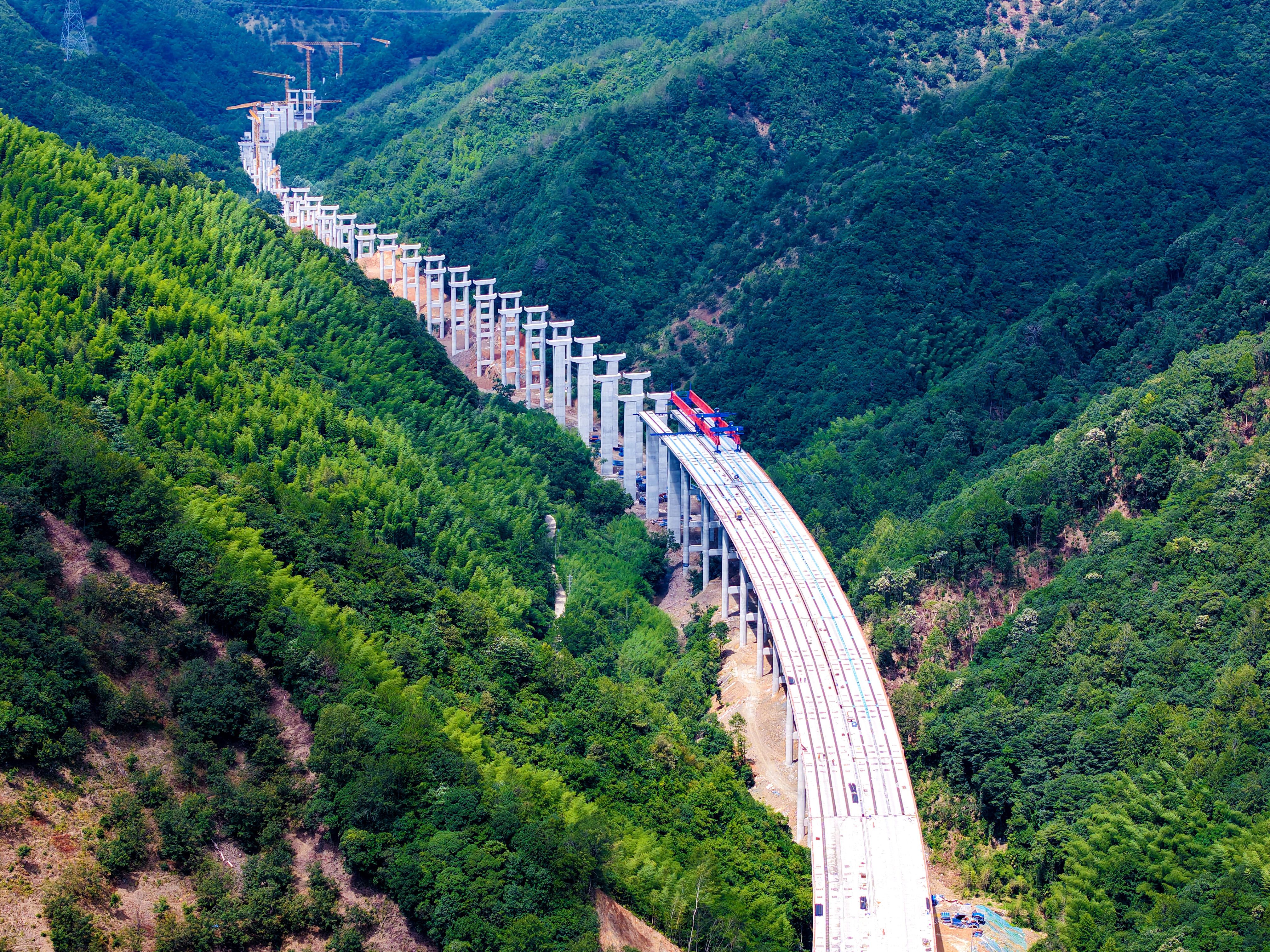 安吉至旌德高速寧國至旌德段項目起點(diǎn)位于寧國市,設(shè)胡樂樞紐與溧寧高速銜接,路線向西延伸,終于旌德縣蔡家橋鎮(zhèn)接入S11蕪黃高速,全長約32公里。該項目作為促進(jìn)“大黃山”地區(qū)與滬蘇浙城市群互聯(lián)互通的重要通道,建成通車后,旌德至杭州的車程將縮短至2小時,大幅提升跨省出行效率。由安徽建工路橋承建的寧旌高速路基1標(biāo),包含特大橋1座、大橋3座、樞紐互通1處及短隧道1座。