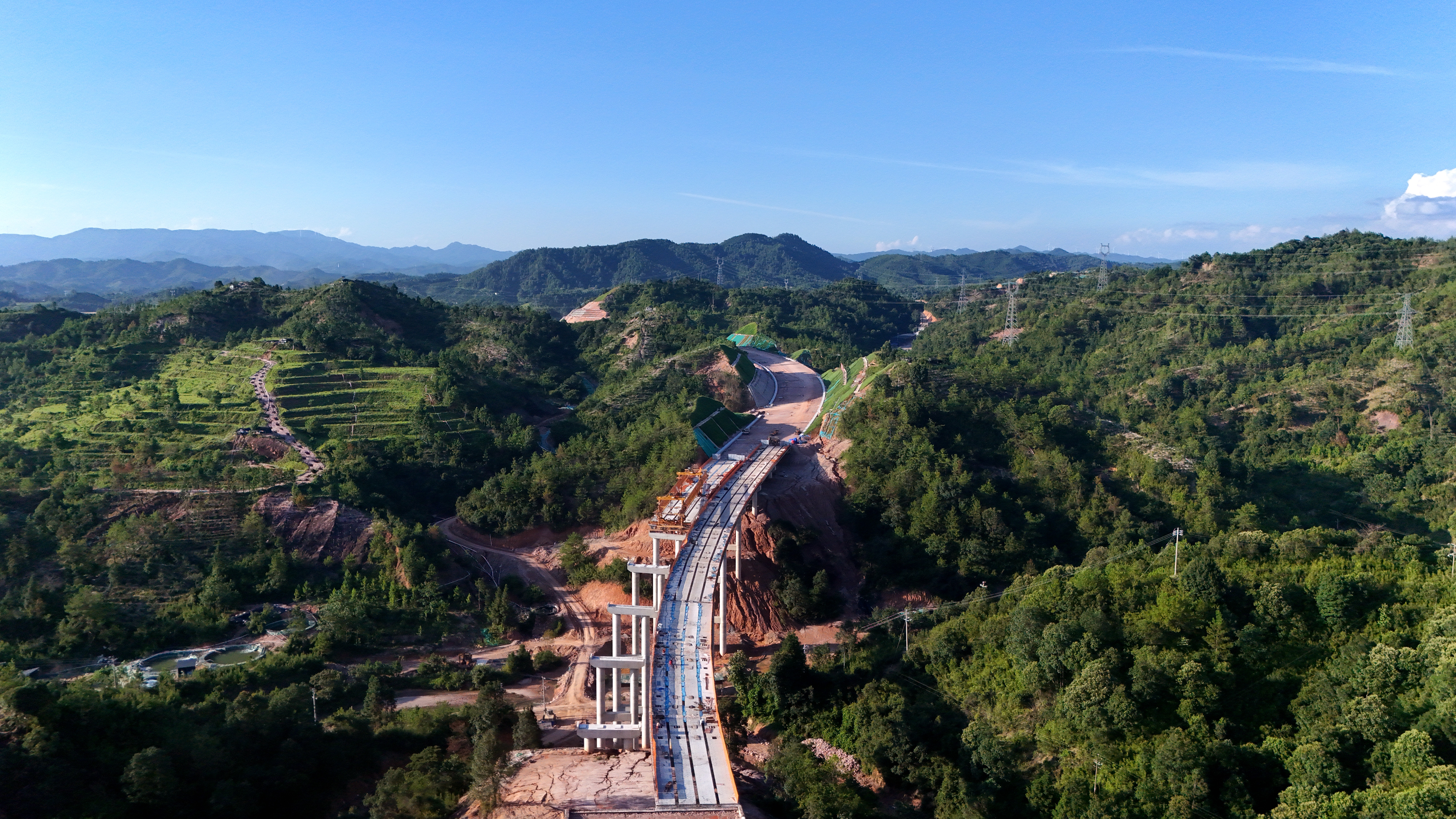 項目全長19.761公里,上跨濂江并下穿大廣高速公路、贛深高鐵,沿線經(jīng)過低山、丘陵等多種地形,戰(zhàn)線長、點多面廣,施工組織難度大。項目根據(jù)不同的現(xiàn)場環(huán)境將全線劃分為四個工區(qū),通過項目部“一個中樞”指揮多個終端,實現(xiàn)對各工區(qū)、各班組的層層穿透式管理,實現(xiàn)進度及資源的高效調(diào)控。
