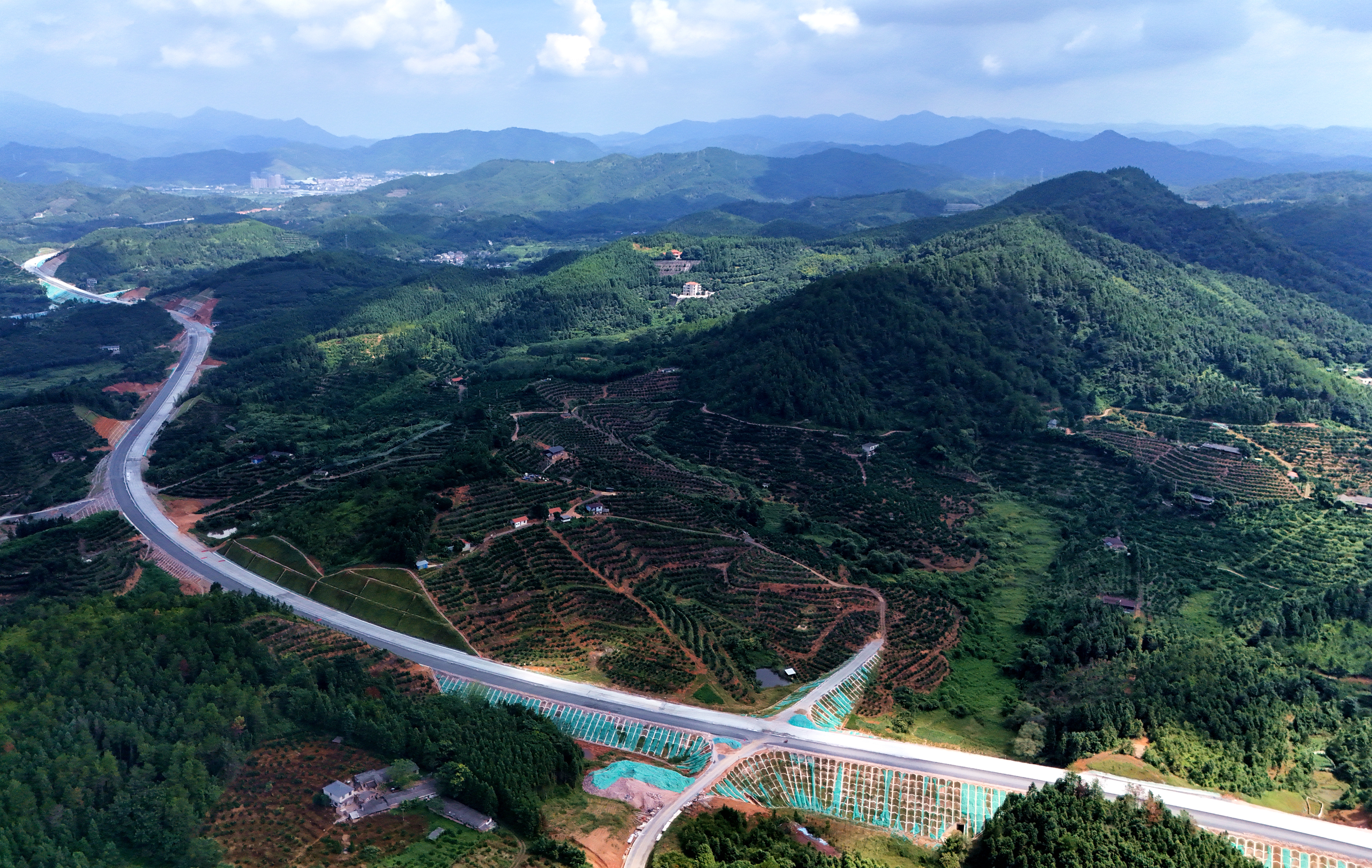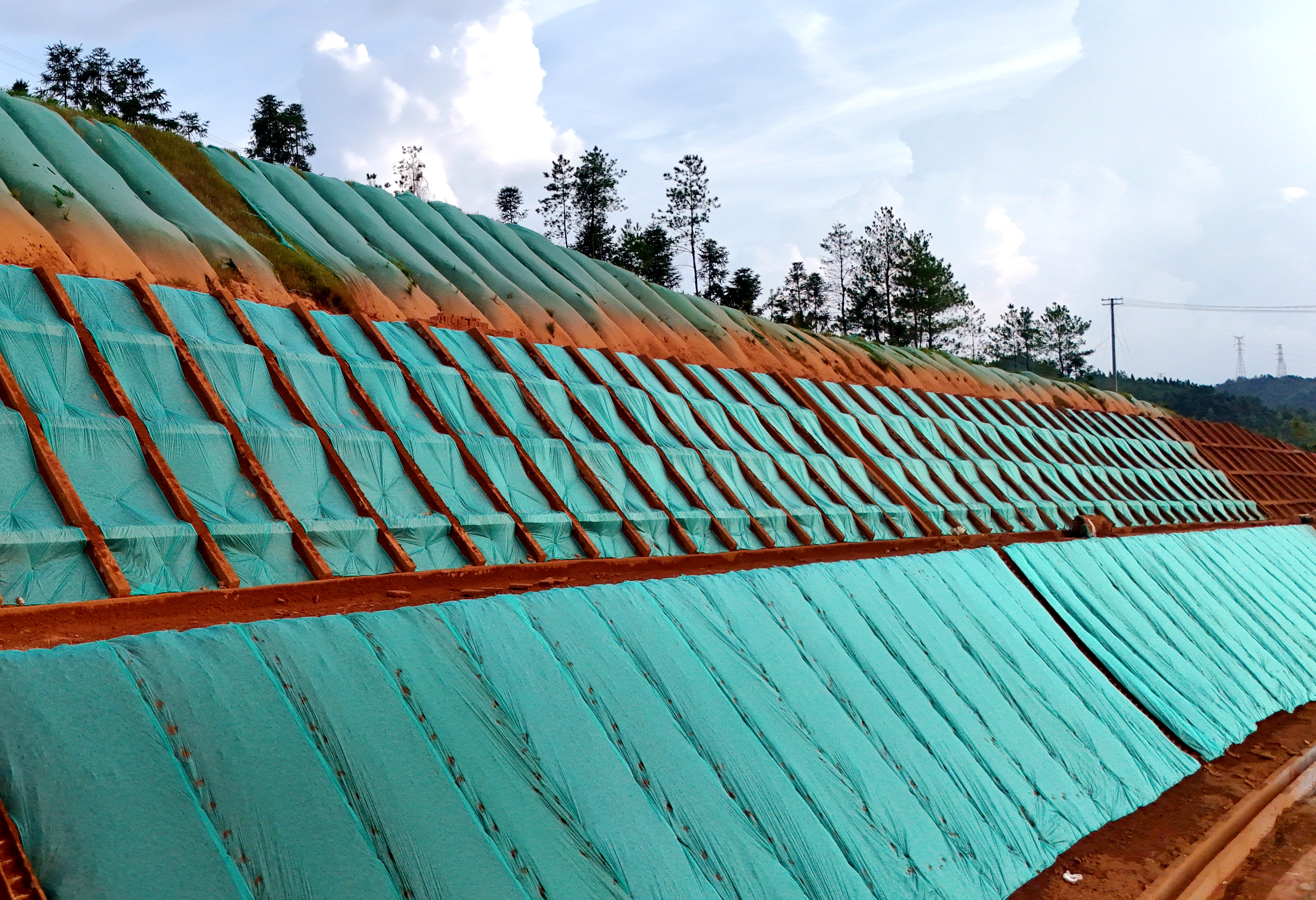 面對土壤本身易侵蝕、穩(wěn)定性差的巨大挑戰(zhàn),項目部提出了“預防為主、防治結(jié)合、全程管控”的施工思路。在滿足穩(wěn)定性的前提下控制坡率,有效降低坡面流速,減少侵蝕;同時采取“開挖一段、防護一段、綠化一段”的分區(qū)作業(yè)、分段施工方式,避免大面積同時開挖,縮短土壤裸露的時間;并針對紅壤酸性強、貧瘠、直接綠化困難的特點,充分發(fā)揮項目技術(shù)與設備優(yōu)勢,選取耐貧瘠、耐酸性、固土能力強、根系發(fā)達的本地草種,將種子、肥料、土壤改良劑、粘合劑、保水劑等與水混合,成功改良坡面土壤。通過該施工方法,項目降低綜合成本18%,水土流失減少70%,實現(xiàn)了降本增效與生態(tài)環(huán)保的多重效益。