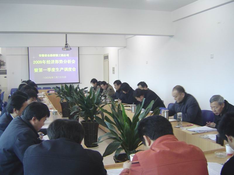 2月28日,公司在四樓會(huì)議室召開(kāi)2009年經(jīng)濟(jì)形勢(shì)分析會(huì)暨第一季度生產(chǎn)調(diào)度會(huì)。公司領(lǐng)導(dǎo)班子成員、直屬(生產(chǎn))單位負(fù)責(zé)人、機(jī)關(guān)部門(mén)負(fù)責(zé)人、直屬項(xiàng)目部經(jīng)理、總工和財(cái)務(wù)負(fù)責(zé)人共計(jì)50余人參加了會(huì)議。會(huì)議由副總經(jīng)理盛明宏主持。