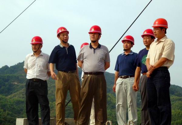 程廳長一行一到項目部就馬不停蹄地來到施工現場,一邊詢問施工進展情況,一邊現場查看和指導。程廳長在肯定項目前期安全工作成績的同時,對金桃大橋后期施工安全防范和安全措施提出了具體要求和指導意見。一是后期施工一定要把安全工作放在首位,工期必須服從安全、質量要求;二是要對纜索吊系統(tǒng)進行一次全面的安全隱患排查;三是要注意結構件堆放分布合理;四是要合理安排一線工人作息時間,避開高溫時間施工,以防中暑等;程廳長還對安徽路橋在金桃大橋建設中做出的努力給予了高度評價。