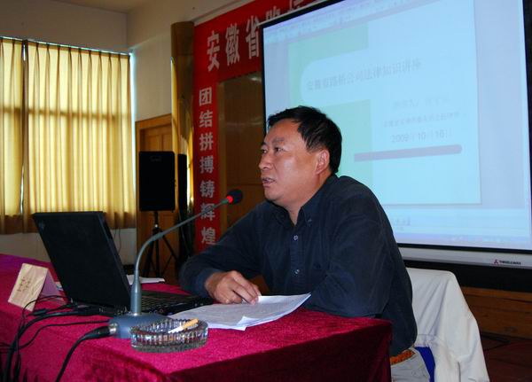 隨著我國法制的不斷健全,人們的法律意識和維權意識不斷增強,近些年來,隨著公司的發(fā)展壯大,在對外經(jīng)營和施工過程中出現(xiàn)的法律訴訟案件也逐年增多。為了有效防范法律風險,加強公司合同管理工作,20091016,由公司企業(yè)發(fā)展部主辦、安徽首安律師事務所主講的公司法律知識講座在七樓會議室舉行。公司領導、各直屬項目部經(jīng)理、財務負責人和合同管理員,各分支機構負責人和后勤管理人員以及機關全體員工參加了此次講座。