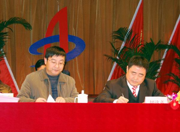 集團(tuán)公司董事長(zhǎng)、總經(jīng)理胡運(yùn)成與公司總經(jīng)理汪衛(wèi)東簽訂2010年生產(chǎn)、經(jīng)營(yíng)目標(biāo)責(zé)任書(shū)