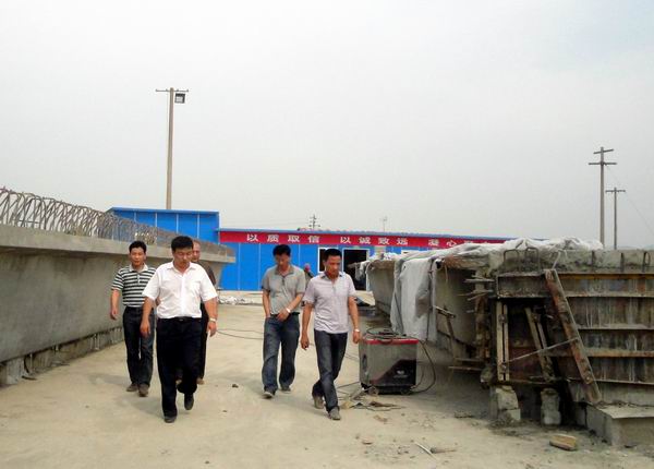 7月2日下午2點30分,汪總一行先來到馬鞍山東環(huán)改造項目指導工作,該項目經(jīng)理冷峰全程陪同。汪總一行首先頂著酷暑、披著煙塵,來到了該項目部的清淤現(xiàn)場、預制場和樁基現(xiàn)場,仔細耐心的查看了各項施工任務的進展情況以及質量情況。隨后,在項目部會議室,汪總一行又聽取了項目經(jīng)理冷峰關于近期該項目工程、試驗、安全、財務等工作開展情況的匯報后,在肯定了該項目前期工作的同時,也針對其中的工程質量、安全文明等存在的問題,提出了寶貴意見。希望該項目能抓緊落實,及時把問題解決。該項目經(jīng)理冷峰表示一定會按照公司的意見與要求,解決問題,提高工作水平。