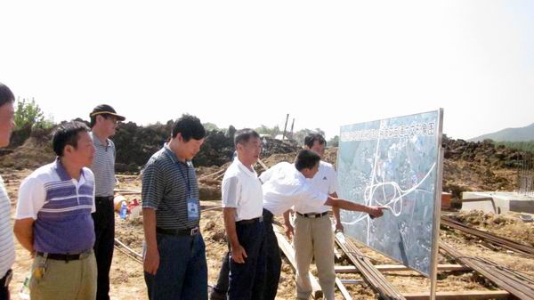 晴空萬里,微風(fēng)徐徐,正值工程大干好時機(jī),工地一片繁忙的景象。土方車輛陸陸續(xù)續(xù),施工機(jī)械競相舞動。李董一行驅(qū)車沿施工便道一路觀望,從東環(huán)路,經(jīng)A匝道與南環(huán)線,隨后在南環(huán)主線與A匝道交匯點——AK0+129現(xiàn)澆橋施工處駐足觀看。項目經(jīng)理冷峰結(jié)合施工形象圖,詳細(xì)介紹了目前我部工程進(jìn)展情況、剩余工程的計劃安排以及工程質(zhì)量、安全等方面的控制與保障措施。李董悉心聽取,了解情況,對工程目前的進(jìn)展表示滿意;同時指出,南環(huán)互通立交改建工程處在整個東環(huán)改造的樞紐位置,控制著整體工期,要求我部精心組織,合理安排,借大干一百天時機(jī),保質(zhì)保量完成施工任務(wù)。最后李董一行先后視察了匝道施工現(xiàn)場、梁板架設(shè)施工現(xiàn)場等。