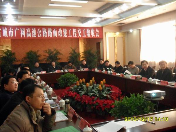 12月17日,廣祠高速公路改建工程項目交工驗收會議在廣德縣隆重召開,公司承建的廣祠01標以93.6分的高分順利通過交工驗收。安徽省高速公路控股集團公司副董事長屠筱北、省質(zhì)檢站、宣城市交通局相關(guān)負責人、公司總經(jīng)理汪衛(wèi)東、副總經(jīng)理盛明宏等及相關(guān)媒體參加了交工驗收會。