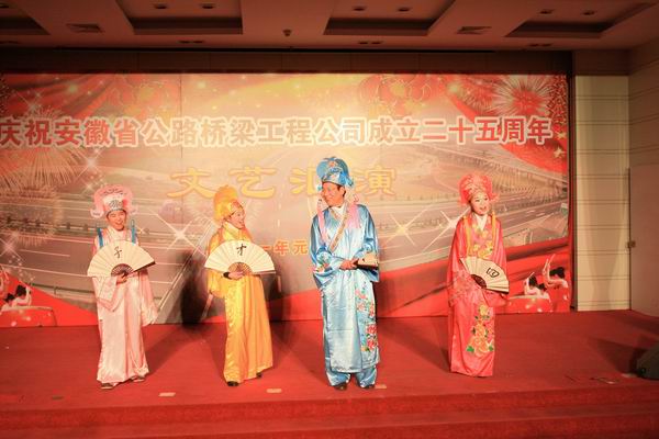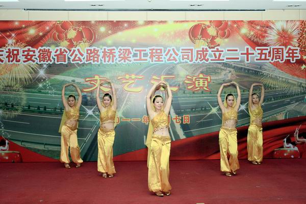 由環(huán)通公司表演的鼓樂《榮耀之光》將匯演氣氛充分展開,在激昂的鼓聲中全體員工看到了過去的榮耀,同時(shí)也看到了未來安徽路橋的榮耀之光。隨后的路面公司男聲獨(dú)唱《想家的時(shí)候》表達(dá)了路橋人舍小家為大家的“路橋情”?,F(xiàn)代舞《nobody》將歡快的舞曲、嫵媚動感的舞蹈結(jié)合在一起,展示出路橋青年人可愛的一面。四分公司表演的三句半·路橋雜談——《四大才子》,不時(shí)讓觀眾捧腹大笑。男聲組合唱《80、90的歌》用美妙的歌聲征服了觀眾。詩朗誦《安徽路橋人之歌》結(jié)合湖北宜巴項(xiàng)目抗洪救災(zāi)的事跡,歌頌了路橋人勤奮苦干的風(fēng)采。公司機(jī)關(guān)的美麗姑娘攜手獻(xiàn)上了神秘充滿愛的《印度舞》,將觀眾帶入美妙高雅的民族舞蹈藝術(shù)殿堂,體現(xiàn)高尚的藝術(shù)品位和追求。橋梁公司年輕人表演了小品《路橋人的節(jié)目》,展示了路橋員工如何開動腦筋,為文藝匯演獻(xiàn)上最好的節(jié)目……