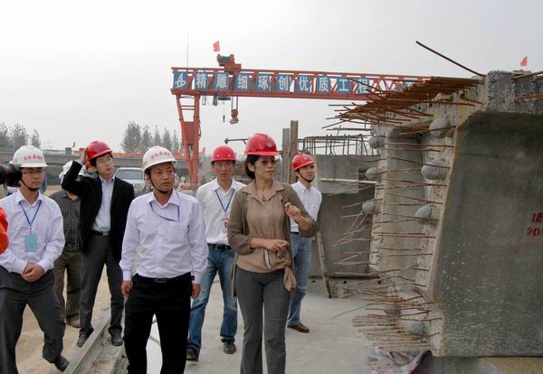 在宣寧高速02標項目部,張曉冰副局長與汪衛(wèi)東總經(jīng)理親切交談,深入了解了公司的發(fā)展歷史,認真聽取了項目經(jīng)理余躍對工程概況、工程進展等情況的匯報;并查看了項目部試驗室和儀器設備,檢查了試驗內(nèi)業(yè)資料,對項目部各項工作給予了充分肯定。張曉冰副局長還實地察看了項目預制場、水陽江大橋,對施工現(xiàn)場科學組織、嚴控質(zhì)量工藝、重視生產(chǎn)安全給予了高度好評。