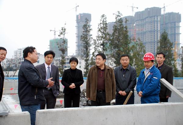 胡董事長(zhǎng)一行首先視察了即將完工的合肥市政重點(diǎn)工程——合作化南路高架1標(biāo)。在公司總經(jīng)理汪衛(wèi)東、黨委書記陳光磊等有關(guān)領(lǐng)導(dǎo)的陪同下,胡董事長(zhǎng)登上高架橋,沿途視察了工程建設(shè)情況。即將完工的高架橋已經(jīng)展現(xiàn)雄姿,施工人員正在緊張忙碌著,胡董事長(zhǎng)走上前與他們握手交談,仔細(xì)了解施工新技術(shù)、新工藝、新材料應(yīng)用情況。當(dāng)聽(tīng)說(shuō)合作化南路高架因進(jìn)度快、質(zhì)量好、安全文明施工受到合肥市領(lǐng)導(dǎo)及有關(guān)部門的多次贊揚(yáng)時(shí),胡董事長(zhǎng)欣慰的笑了。胡董事長(zhǎng)指出,合作化路高架橋建設(shè)體現(xiàn)了路橋公司在整合資源上的獨(dú)到之處,這條路也是他所看過(guò)的最好的一條路,安徽省路橋公司不愧為安徽路橋行業(yè)的第一品牌!