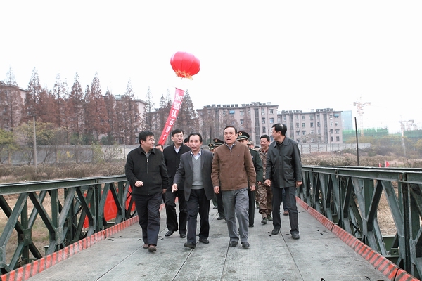 為貫徹交通戰(zhàn)備工作“平時(shí)服務(wù)、急時(shí)應(yīng)急、戰(zhàn)時(shí)應(yīng)戰(zhàn)”總要求,根據(jù)省交通戰(zhàn)備辦公室2012年交通戰(zhàn)備工作安排,11月30日由集團(tuán)公司交戰(zhàn)辦組織安徽省公路工程保障大隊(duì)在合肥警備區(qū)教導(dǎo)隊(duì)訓(xùn)練場(chǎng)進(jìn)行 “321“戰(zhàn)備鋼橋架設(shè)演示。公司承辦了此次演示活動(dòng)。此次演示也是全省交通戰(zhàn)備工作會(huì)議的一項(xiàng)內(nèi)容。南京軍區(qū)交戰(zhàn)辦副主任、軍區(qū)聯(lián)勤部、軍交運(yùn)輸部副部長(zhǎng)王鐵,省交戰(zhàn)辦主任、交通運(yùn)輸廳廳長(zhǎng)梅勁,省交戰(zhàn)辦常務(wù)副主任、交通運(yùn)輸廳副廳長(zhǎng)羅寧等領(lǐng)導(dǎo)出席了觀摩活動(dòng)。省國(guó)動(dòng)委“八辦”專(zhuān)職副主任,省交通運(yùn)輸廳機(jī)關(guān)各處室負(fù)責(zé)人,各市交戰(zhàn)辦負(fù)責(zé)人,省高速控股集團(tuán),交投集團(tuán)和建工集團(tuán)分管領(lǐng)導(dǎo)也參加了觀摩指導(dǎo)。