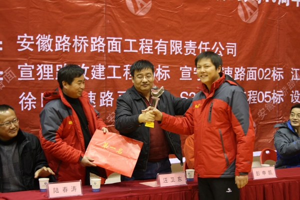 簡短而隆重的開幕式之后, 公司副總劉要武為比賽開球,比賽正式拉開帷幕。揭幕戰(zhàn)在租賃公司與宣貍L5標(biāo)之間展開。雙方球員在場(chǎng)上發(fā)揚(yáng)了敢于拼搏、團(tuán)結(jié)奉獻(xiàn)的精神,精彩、激烈的場(chǎng)面不斷出現(xiàn),贏得了場(chǎng)下觀眾的一陣陣掌聲。在兩天的角逐中,各代表隊(duì)均表現(xiàn)優(yōu)秀,隊(duì)員們之間充分溝通、相互團(tuán)結(jié),充分展現(xiàn)了“比賽第二、友誼第一”的比賽精神。后勤代表隊(duì)技高一籌,最終以領(lǐng)先幾分的優(yōu)勢(shì)戰(zhàn)勝了宣貍L5標(biāo)代表隊(duì),贏得了比賽的冠軍,宣貍L5標(biāo)、徐明03標(biāo)分別獲得亞軍、季軍。宣寧路面02標(biāo)、撫吉BP2標(biāo)、租賃公司分別獲得優(yōu)秀組織獎(jiǎng)、精神風(fēng)貌獎(jiǎng)和道德風(fēng)尚獎(jiǎng)。