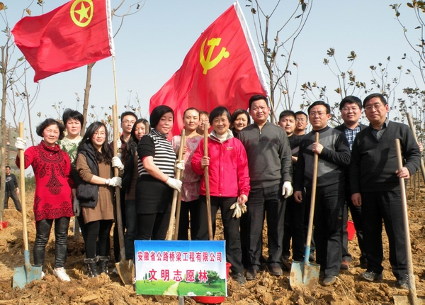 植樹活動在蜀山區(qū)新產(chǎn)業(yè)園區(qū)蜀麓公園進(jìn)行。公司積極認(rèn)種認(rèn)養(yǎng)了50余棵樹木,建立了“安徽省公路橋梁工程有限公司文明志愿林”。在陳書記的帶領(lǐng)下,大家分工明確,相互配合,有人抬樹,有人鏟土,有人澆水,忙的熱火朝天。一個多小時后,一排排樹木整齊的矗立著,迎著春風(fēng),煥發(fā)著勃勃生機(jī)。