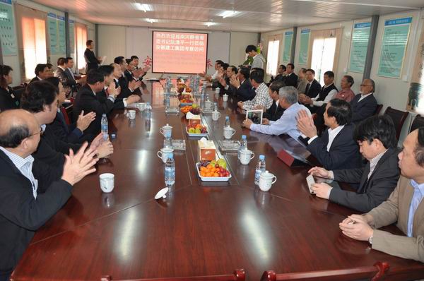 在項(xiàng)目施工現(xiàn)場(chǎng),市政分公司副經(jīng)理王明禮向考察團(tuán)詳細(xì)介紹了工程情況。當(dāng)考察團(tuán)對(duì)該項(xiàng)目?jī)H需300天就能夠完成概算6.06億元的施工任務(wù)時(shí),表現(xiàn)出不可思議和贊嘆之情。在項(xiàng)目會(huì)議室,孫學(xué)軍董事長(zhǎng)對(duì)公司總體情況進(jìn)行了介紹,并逐一介紹了公司在市政、高速、橋隧、海外等各個(gè)領(lǐng)域的精品工程。