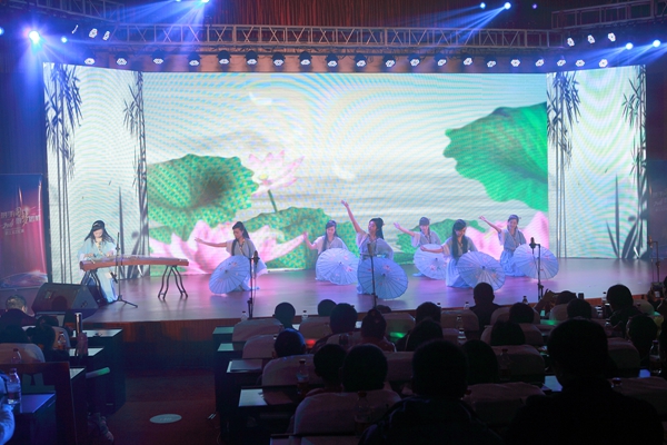 文藝匯演融聲樂、器樂、舞蹈、相聲、小品、朗誦、情景劇等多種藝術(shù)形式為一體,青春時尚元素與傳統(tǒng)元素完美結(jié)合,多角度、多視點(diǎn)營造出昂揚(yáng)向上、全員同樂的節(jié)日氣氛。
