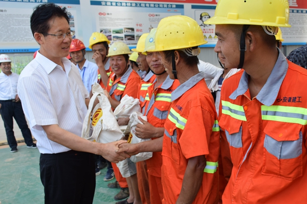8月3日,淮北市委常委、紀(jì)委書記宰學(xué)明在市紀(jì)委監(jiān)察委和市總工會(huì)相關(guān)負(fù)責(zé)人的陪同下,深入淮北市S101及S254改建工程PPP項(xiàng)目施工現(xiàn)場(chǎng),看望慰問公司一線參建人員。