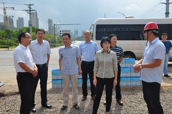 在施工現(xiàn)場,韋秀芳聽取了項(xiàng)目負(fù)責(zé)人關(guān)于施工進(jìn)展和防暑降溫措施落實(shí)等方面工作匯報(bào),對高溫天氣下堅(jiān)守崗位的一線建設(shè)者表示感謝。韋秀芳一行送來了礦泉水等防暑降溫用品,叮囑大家要勞逸結(jié)合,時刻注意身體健康,項(xiàng)目要科學(xué)合理安排施工,確保工作人員在炎熱夏季作業(yè)安全。