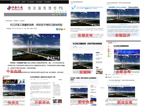 引江濟淮(合肥段)3座市政橋梁工程二標(biāo)段進展得到省市級主流媒體廣泛關(guān)注報道