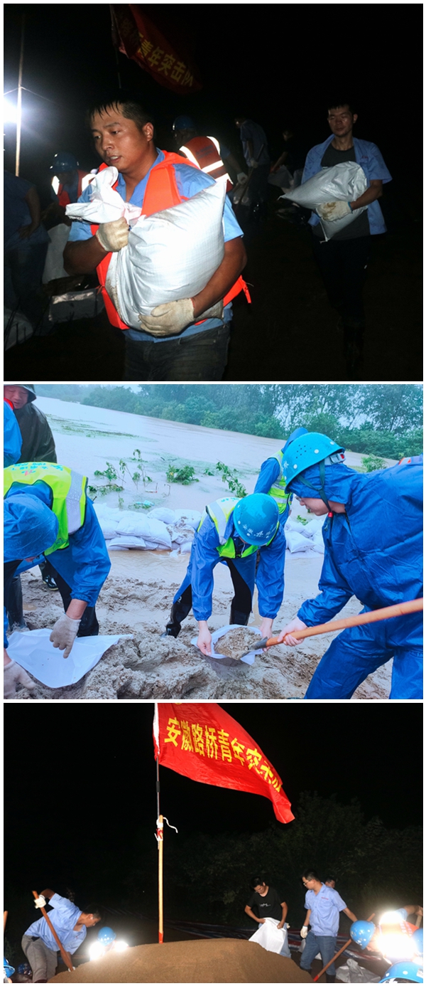 這群95后新員工剛到項目上工作沒有幾天,就面臨了一次“勞其筋骨”的大考。但面對困難,他們沒有退縮。 一些項目青年聞“汛”而動,自發(fā)組織青年志愿者、青年突擊隊奔赴前線,吹響青春集結(jié)號。在抗洪一線,他們肩扛手提,裝袋、搬運(yùn)、填筑,汗水浸透了衣服,實在干不動了,席地而坐或杵著鐵鍬稍作休息,隨后繼續(xù)投入戰(zhàn)斗。在“青年突擊隊”紅旗的輝映下,他們與洪水搏擊,與險情對戰(zhàn),團(tuán)結(jié)協(xié)作,筑起了一道道“青春堤壩”,阻擋了洪水肆虐的腳步,“后浪”搏擊洪災(zāi),有力地推進(jìn)了搶險進(jìn)度。
