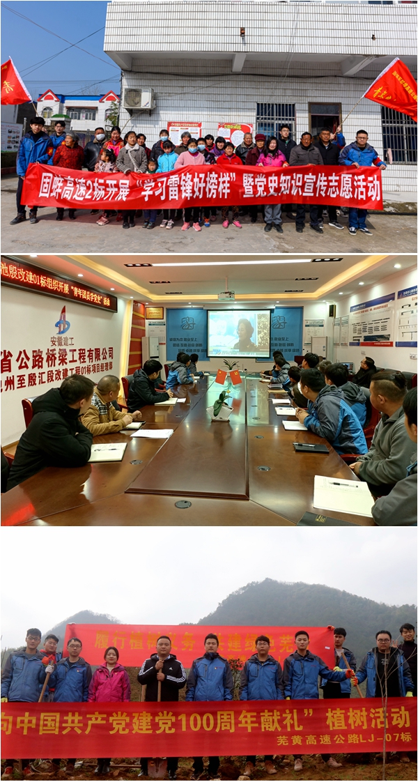 道路分公司、環(huán)通公司、租賃公司結合學雷鋒志愿者服務月活動,組織開展“團員青年學黨史”活動。固蚌02標開展“學習雷鋒好榜樣”暨黨史知識宣傳志愿活動,G318池殷改建01標組織青年團員開展“學黨史、學雷鋒”主題學習會,把學黨史成效轉換為志愿服務具體實踐。