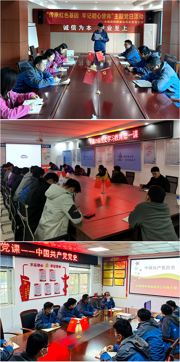路面后勤黨支部開展“傳承紅色基因 牢記初心使命”主題黨日活動,黨員代表分享了《朱德的扁擔》《一床打補丁的棉被》等紅色經典故事。明巢項目黨支部組織學習《中國共產黨簡史》第一章,與會黨員以“紅船精神”為主題,結合自身工作分享如何繼承弘揚革命精神,守好初心、擔好使命。路面租賃公司黨支部開展黨史故事學習交流會,學習革命先烈在實現(xiàn)民族獨立、國家解放中所做出的突出貢獻和不怕犧牲、敢于流血的革命精神,并分享交流學習心得。