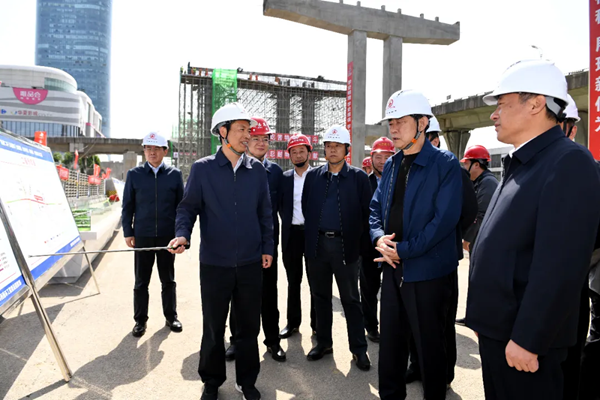 鄧向陽一行在施工現(xiàn)場深入了解了項目的總體規(guī)劃、重大危險源以及應(yīng)對措施、安全管控措施、安全創(chuàng)新措施,對黨建引領(lǐng)安全、智慧工地建設(shè)、綜合管線保護(hù)、安全管理創(chuàng)新做法等表示認(rèn)可。