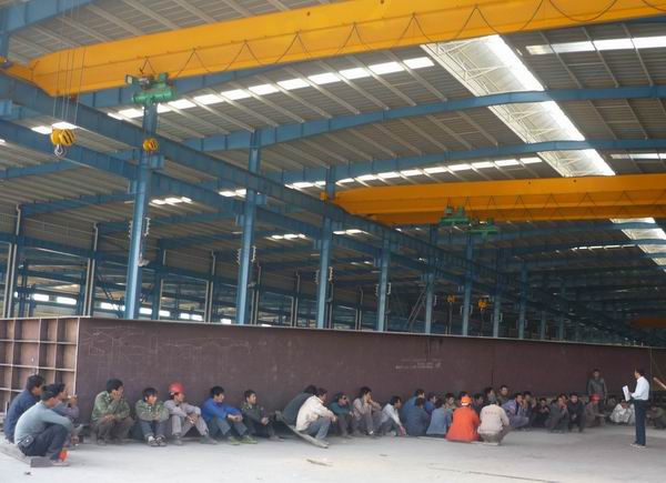 我項目部鋼箱梁預(yù)制場位于長豐縣五山鎮(zhèn),距離項目部約43公里。項目部安全管理人員驅(qū)車一個半小時趕到了梁廠。中午12:50,梁廠職工70余人在生產(chǎn)車間接受交底。這次安全交底的內(nèi)容主要有崗位教育以及鋼箱梁預(yù)制技術(shù)交底。整個交底時間持續(xù)近一個半小時。交底過程中,項目部安全管理人員采用案例與安全規(guī)范要求相結(jié)合的方式,并穿插形象的事例,希望現(xiàn)場職工“鎖好安全的大門,嚴(yán)防事故的小偷”、“不能把安全當(dāng)做抽煙,告訴你抽煙有害健康,你就在繼續(xù)抽煙了”。現(xiàn)場職工認(rèn)真聽講、積極互動,在反饋自身感受的同時接受了安全教育。交底結(jié)束后,現(xiàn)場工人認(rèn)真答填了安全教育試卷。