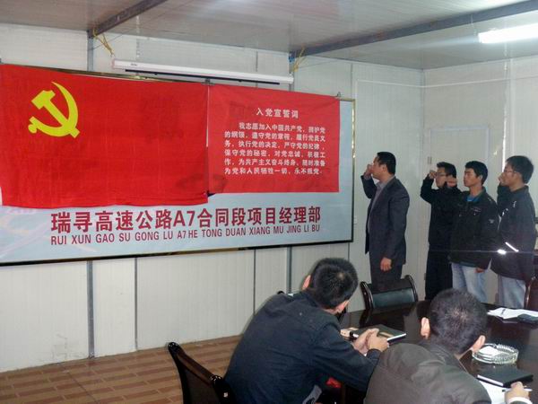 會議第三項議程是由項目經理劉大雷結合項目辦第二階段目標提出了我標段黨支部在下一階段中的任務和目標要求。劉經理指出,在下一階段,黨支部要緊緊圍繞項目辦第二階段目標,深入一線,提高黨員的政治覺悟,起到模范帶頭作用,以“嚴要求、高標準”樹立黨員風范,促進施工生產。