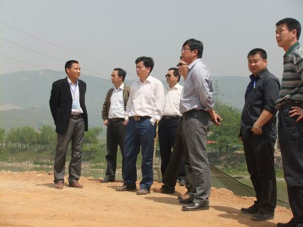 何局長(zhǎng)首先來(lái)到我部北山河大橋施工現(xiàn)場(chǎng),觀看主橋11#墩部位插板樁完成后的主墩承臺(tái)開(kāi)挖情況及引橋樁基的施工情況。在聽(tīng)完項(xiàng)目經(jīng)理冷峰對(duì)當(dāng)前大橋施工的系統(tǒng)介紹后,何局長(zhǎng)對(duì)我部大橋施工的質(zhì)量控制及安全管理提出了具體要求。