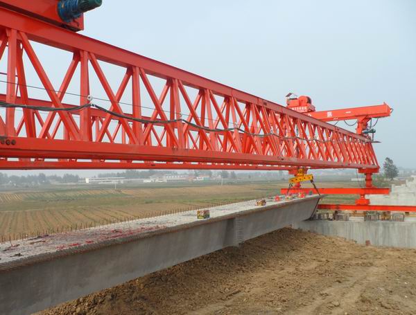 為確保在此次架梁過程中萬無一失,項目部精心制定架梁施工方案,提前做好各項準備工作。為確保架梁施工安全,項目部對架梁設(shè)備進行反復(fù)檢查,對作業(yè)人員進行班前教育,做好交底,制定應(yīng)急預(yù)案,要求全體人員在架設(shè)過程中樹立高度的責(zé)任心,保證整個架梁過程安全、高效。隨著新式架橋機有節(jié)奏的完成一項項動作:試吊、起吊、前移、落梁、就位,一串協(xié)調(diào)而又連貫的運作之后,民利河大橋第一片箱梁穩(wěn)穩(wěn)降落在指定的位置上。