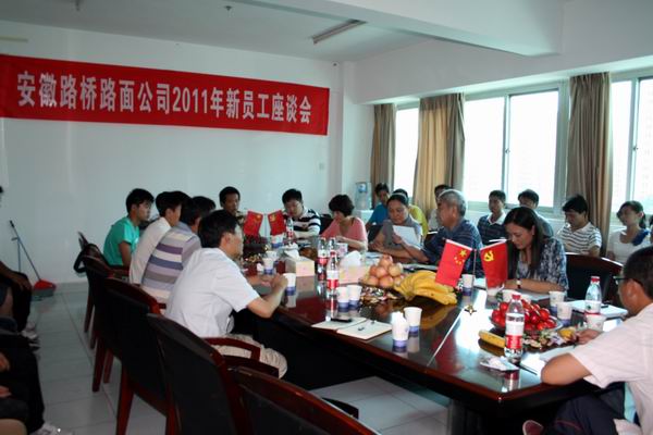為進(jìn)一步了解新員工的思想動(dòng)態(tài),促進(jìn)員工之間、員工與領(lǐng)導(dǎo)之間的溝通和交流,使新進(jìn)員工盡快融入到安徽路橋路面公司這個(gè)大家庭中來(lái),7月6日上午,安徽路橋路面公司2011屆新員工座談會(huì)在路面公司六樓會(huì)議室舉行。公司黨支部書記王年保、總經(jīng)濟(jì)師袁青嶺、工會(huì)副主席姚光群、租賃公司經(jīng)理蔡傳勇以及周六路項(xiàng)目經(jīng)理王小杰、蚌淮路項(xiàng)目副經(jīng)理姚琪等領(lǐng)導(dǎo)及新進(jìn)員工40余人參加了座談會(huì)。會(huì)議由人力資源部經(jīng)理錢紅梅主持。