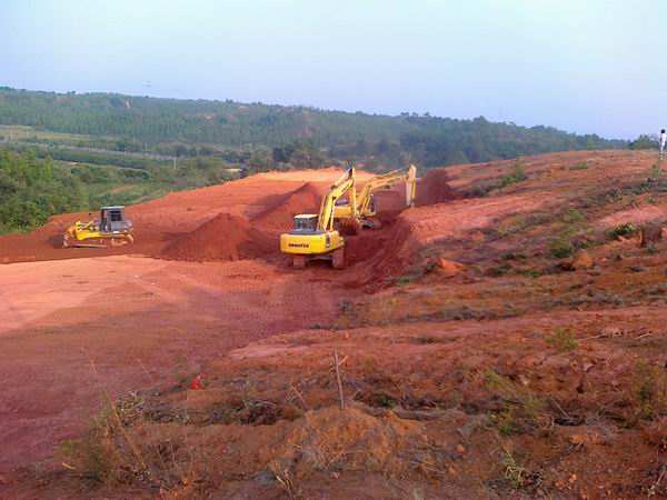 我部施工標(biāo)段全長28公里,項目部將在永豐和吉水兩縣分別設(shè)立一座水穩(wěn)拌合站及一座瀝青拌和站。按照業(yè)主要求,8月份完成水穩(wěn)拌合站架設(shè),10月份完成瀝青拌合站架設(shè)。項目部已經(jīng)定出倒排工期計劃表。目前在永豐縣的“一白一黑”兩站已經(jīng)確定,水穩(wěn)拌和站已具備架設(shè)及備料條件。吉水縣我標(biāo)段所處位置多為山地,且大部分為公益林,經(jīng)過慎重選擇后,選定了一塊約50畝的山林地作為兩站場地。但此處土方量較大,場地整平土方量經(jīng)測算約8萬方。項目部將充分利用晴好天氣,加班加點,計劃10個工作日完成場地整平。