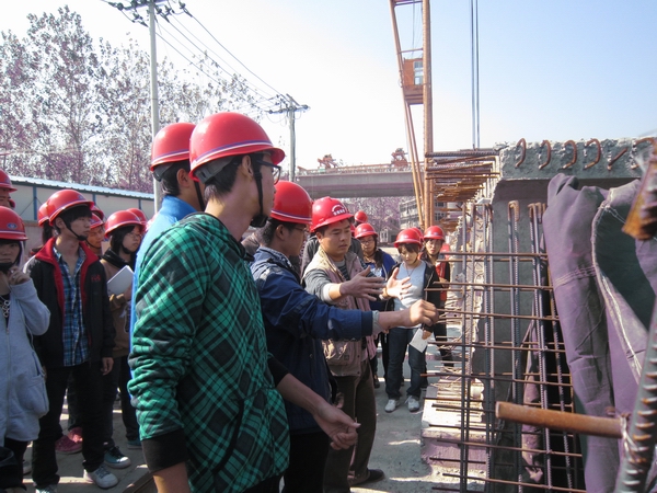 傅總首先對(duì)師生們的到來(lái)表示歡迎,并簡(jiǎn)要介紹了該項(xiàng)目的相關(guān)情況。隨后,該項(xiàng)目熊祖發(fā)為參觀學(xué)生上了一堂精彩的理論課,熊祖發(fā)對(duì)照施工進(jìn)度圖向同學(xué)們?cè)敿?xì)介紹了項(xiàng)目施工流程、難點(diǎn)、重點(diǎn)以及工程造價(jià)組成。為加深印象,熊祖發(fā)帶領(lǐng)師生實(shí)地參觀了主橋、鋼桁架梁、預(yù)制梁場(chǎng)等施工現(xiàn)場(chǎng)。每到一處,同學(xué)們都被精致的工藝所折服,紛紛稱贊安徽路橋不愧為一家大企業(yè),并當(dāng)場(chǎng)表達(dá)了加盟路橋公司的愿望。